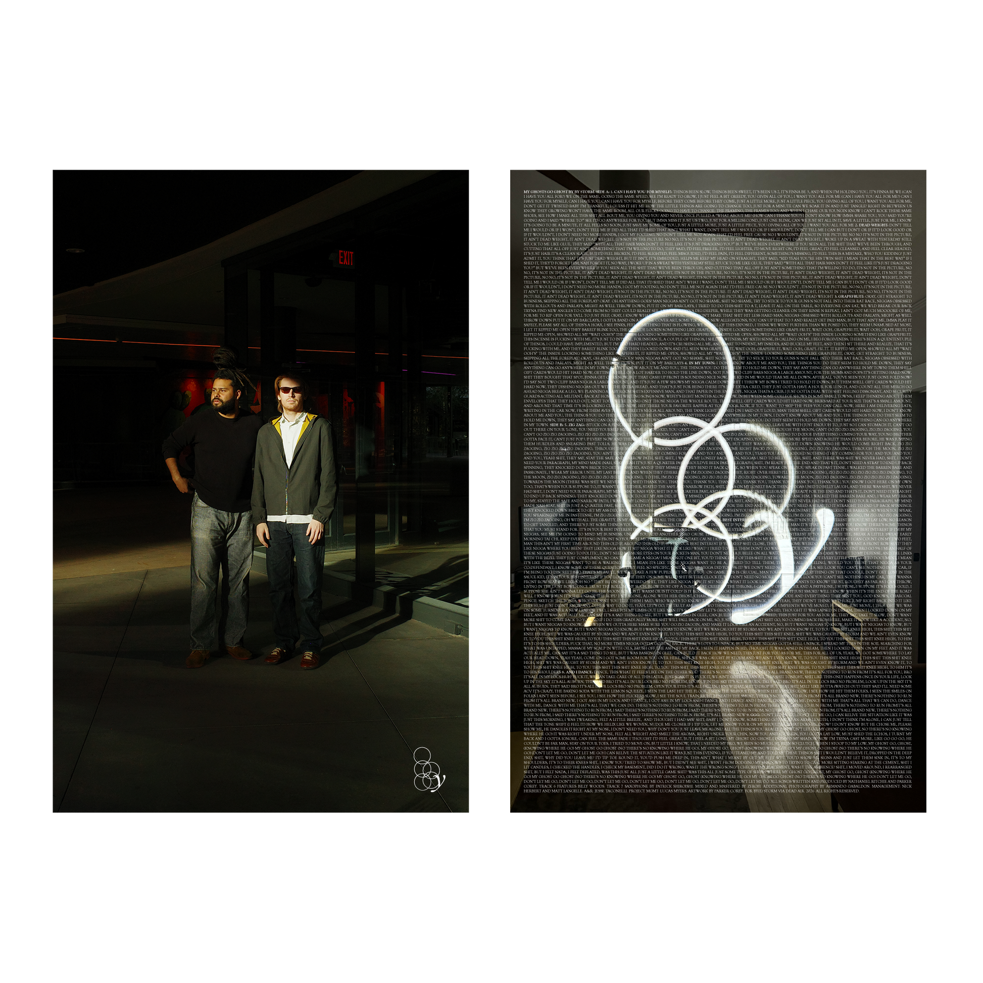 By Storm’s debut album “My Ghosts Go Ghost” pressed on 12” milk-clear vinyl with custom inner sleeve and a double sided 11x17” poster insert. Exclusive online release, limited to 1000 copies.